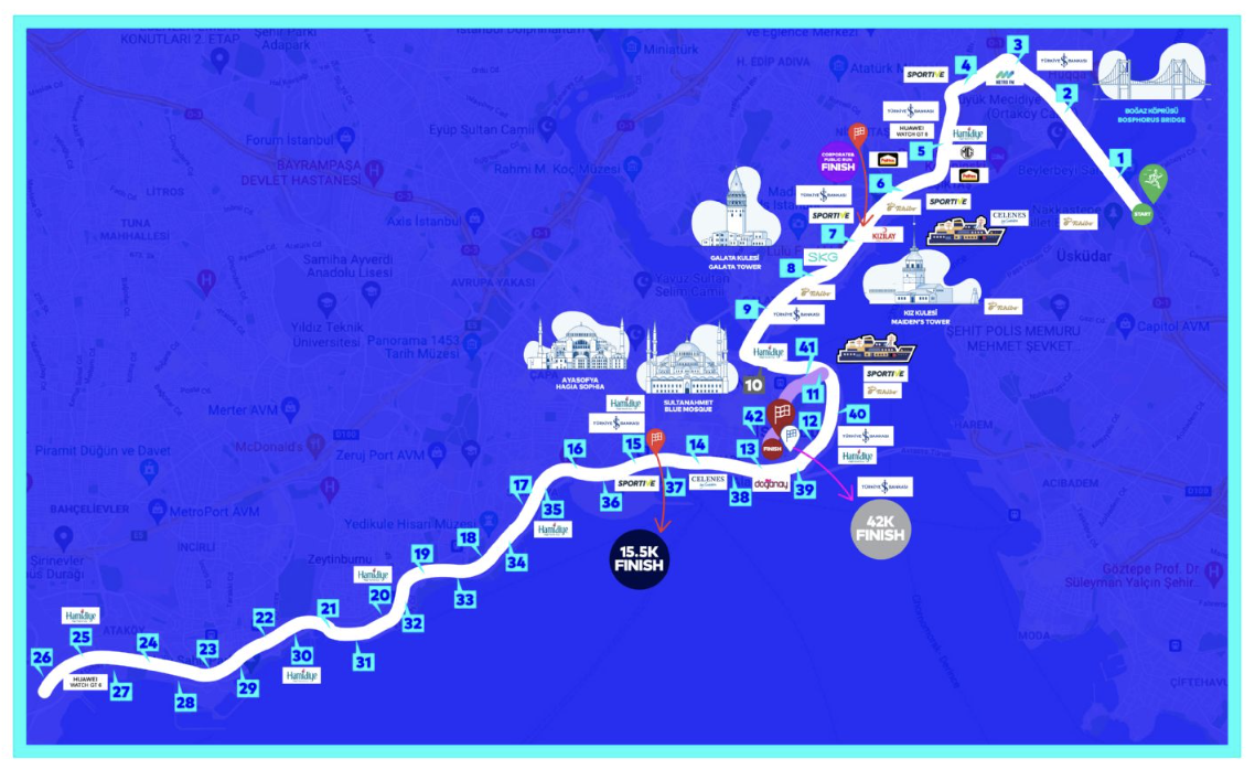 コースはアジア大陸からスタートしてボスポラス大橋を通過しヨーロッパ大陸へ渡り、イスタンブール旧市街や海沿いを巡る世界唯一の2大陸マラソンで、毎年世界中からたくさんのランナーがやって来ます。